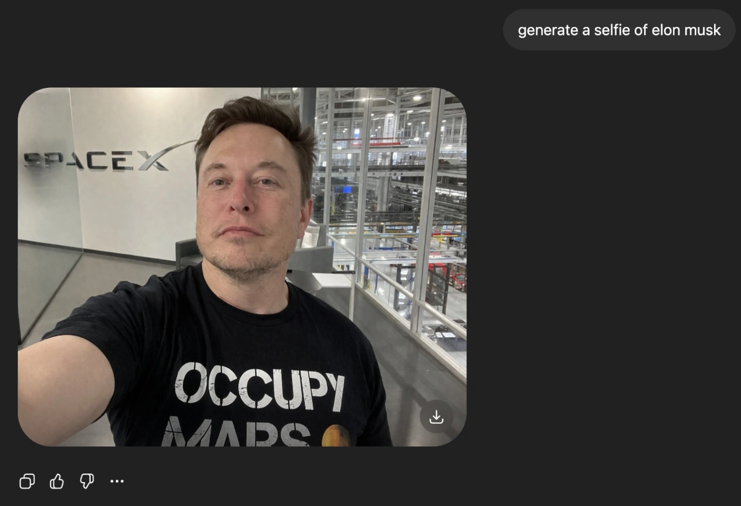 - Original Prompt (@eptwts): "generate a selfie of elon musk"
